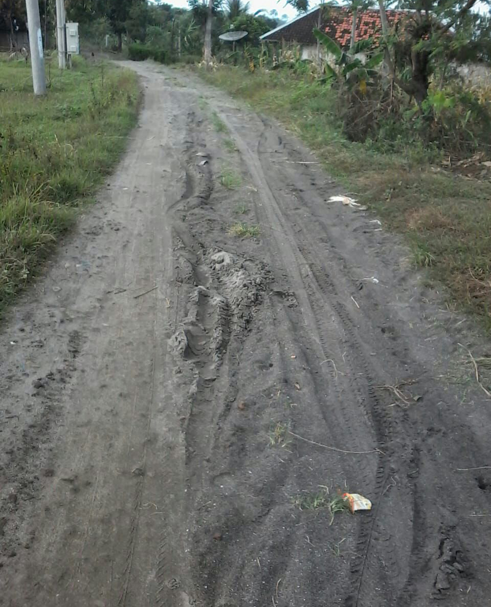 Kuat dugaan karena dikerjakan tidak sesuai bestek, maka saat ini kondisi jalan tersebut telah mengalami kerusakan sangat parah.