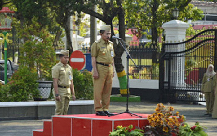 Dalam sambutanya Bupati Hariyanto mengatakan, “Pancasila ini merupakan sebagai dasar negara, yang harus ditaati dan dipatuhi semua elemen masyarakat. “Maka itu ya sudah harus kita pertahankan, final nggak usah kita utik utik” tegasnya.