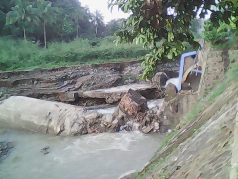 “Tanggul nya jebol pada hari minggu sekitar pukul 14:30 WIB, diduga jebolnya tanggul karna sudah terlalu tua, karna waktu kejadian, debit airnya normal,” imbuh Yana.