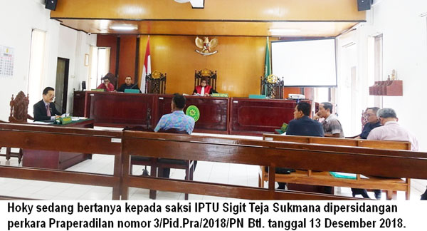 Hoky melakukan Praperadilan karena memang tidak ada tindak pidana penganiayaan sama sekali, bahkan Hoky tidak pernah memperoleh surat panggilan Pertama, tetapi langsung surat panggilan Kedua, serta memang tidak ada bukti visum, termasuk pada CCTV di PN Bantul tidak ada bukti penganiayaan sama sekali, namun pada tanggal 15 Januari 2019 Hoky ditetapkan sebagai Tersangka lagi, meskipun diubah dari tindak pidana penganiayaan berat pasal 351 KUHP menjadi tindak pidana penganiayaan ringan Pasal 352 KUHP.