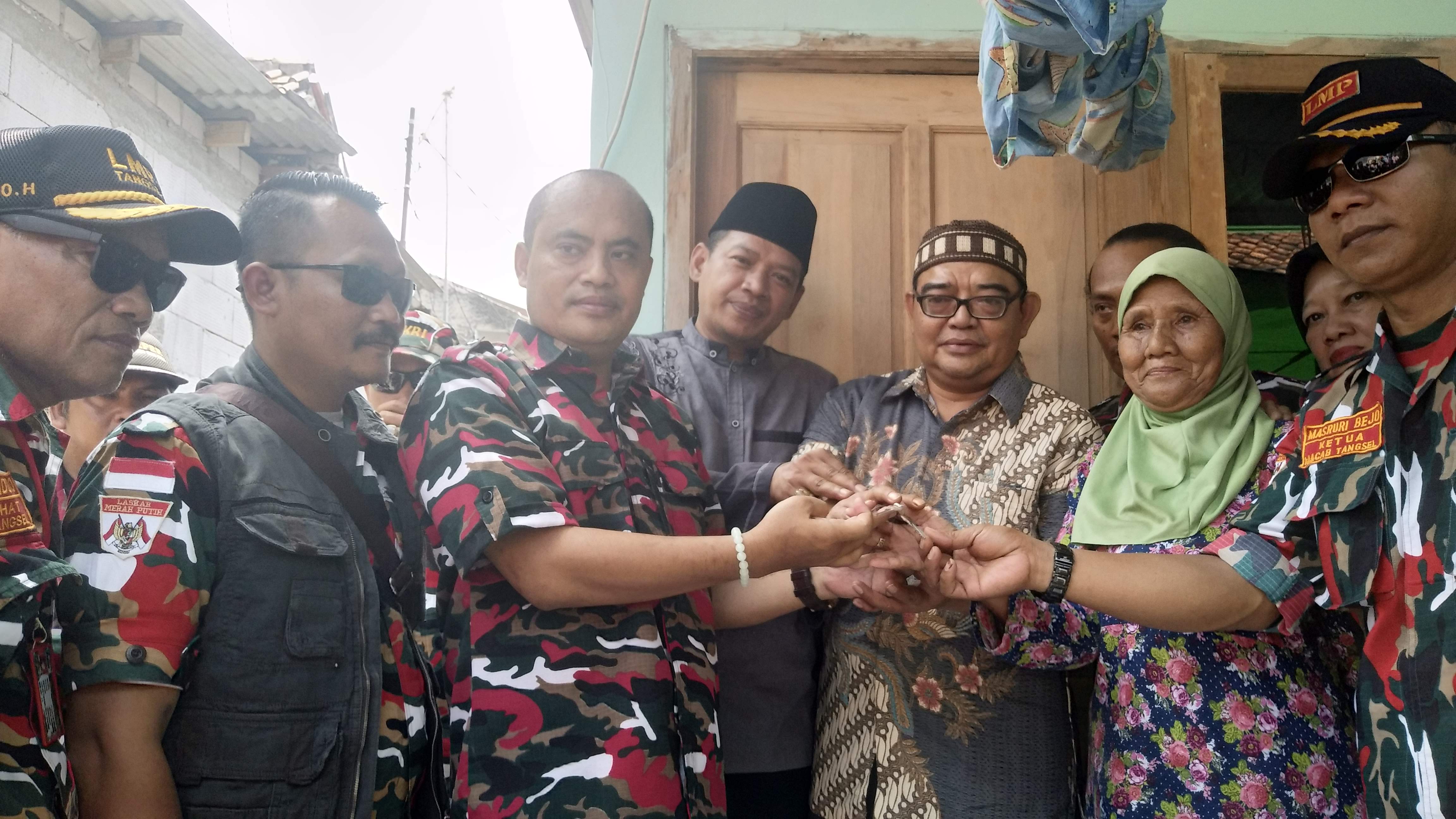Penyerahan kunci rumah sebagai simbolis penyerahan rumah baru bagi nenek Kinah tersebut dilakukan oleh Kepala Markas Daerah (Kamada) Banten Erwin Subroto didampingi kepala Markas Cabang (Macab) Masruri Bejo, Ketua Harian ‘Bang Jabrik’ Ahmad dan jajaran pengurus lainnya. Dalam kesempatan tersebut, hadir juga pembina LMP Macab Tangsel yang juga Asisten Daerah Bidang Administrasi Umum (Asda 3) Kota Tangsel Teddy Meiyadi.