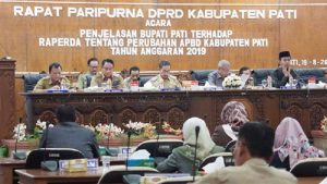 Dalam sambutanya Bupati Haryanto,”mengatakan bahwa perubahan kebijakan umum APBD Kabupaten Pati tahun anggaran 2019, pendapatan daerah diestimasikan sebesar Rp. 2.931.779.890.000,00 atau meningkat sebesar Rp. 100.800.702.000,00 dibandingkan dengan target pendapatan sebelum perubahan APBD Tahun Anggaran 2019.