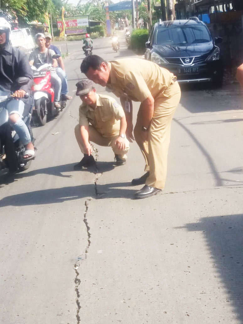 ” Setiap hari banyak sekali truk truk besar pengangkut tanah untuk urukan jalan tol di BDN yang lewat disini, setiap mereka lewat selalu terasa jalan bergetar, ” jelas pria pemilik tambal ban yang rumahnya persis berada di pinggir jalan yang retak.