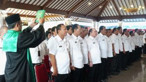 PATI NEWSMETRO.CO – Perubahan nomenklatur dan kekosongan jabatan di lingkungan Pemerintah Kabupaten Pati, Bupati Pati Haryanto melantik dan mengambil sumpah jabatan sejumlah pimpinan tinggi pratama, pejabat administrator, dan pengawas yang bertempat di Pendopo Kabupaten Pati. Rabu, (08/01/2020).