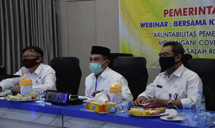 PATI, NEWSMETRO.CO – Bupati Haryanto mengikuti video conference dengan tema Akuntabilitas Pemerintah Pusat dan Daerah dalam Menangani Covid- 19, Penyakit Tidak Menular, Masalah Rokok dan Tuberkulosis melalui aplikasi Zoom di ruang Pati Command Center (PCC) Setda Pati, Rabu (10/6).