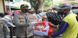 Dalam kegiatan tersebut, Polres Pati membagikan 100 paket sembako yang di bagikan kepada Purnawirawan TNI, Purnawirawan Polri, Wakarawuri, ojek online dan Tukang becak.