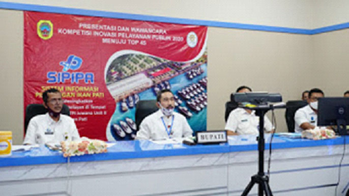 PATI, NEWSMETRO.CO – Rabu (8/7/2020 ),bertempat di Ruang Pati Command Center (PCC) Setda, Bupati Pati Haryanto, mempresentasikan Sistem Informasi Pelelangan Ikan Pati (Sipipa) dan mengikuti tahapan wawancara virtual Top 99 menuju Top 45. Kompetisi Inovasi Pelayanan Publik (KIPP) 2020 yang diselenggarakan oleh Kementerian Pendayagunaan Aparatur Negara dan Reformasi Birokrasi (PANRB).
