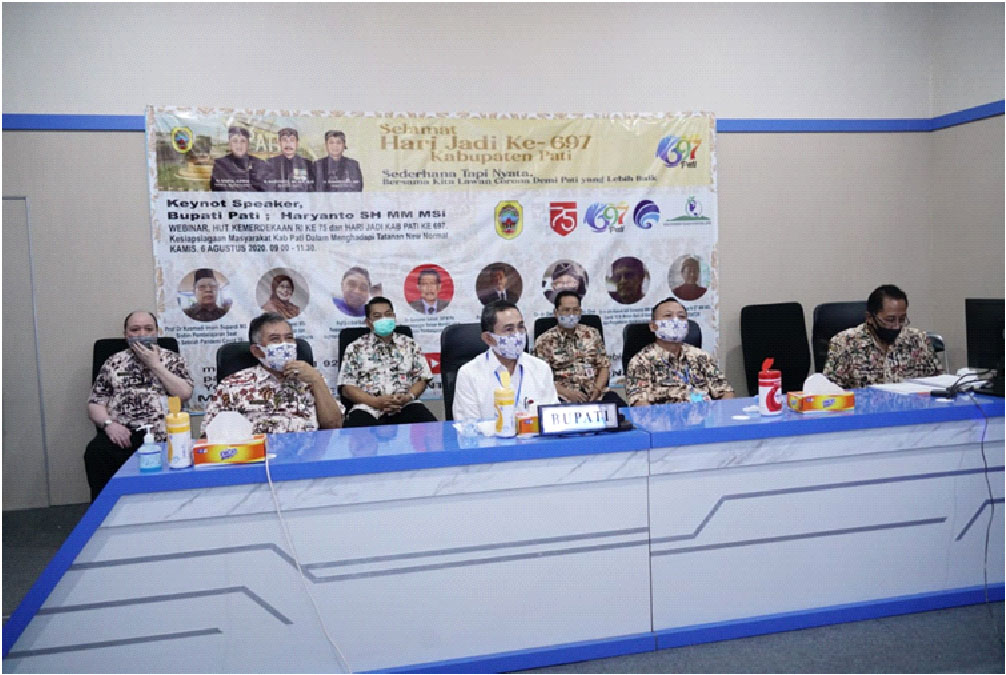 Ia mengikuti webinar tersebut dari Ruang Pati Command Center (PCC) Sekretariat Daerah Kabupaten Pati. Webinar ini diselenggarkaan dalam rangka memperingati Hari Jadi ke-697 Kabupaten Pati dan HUT Ke-75 RI.