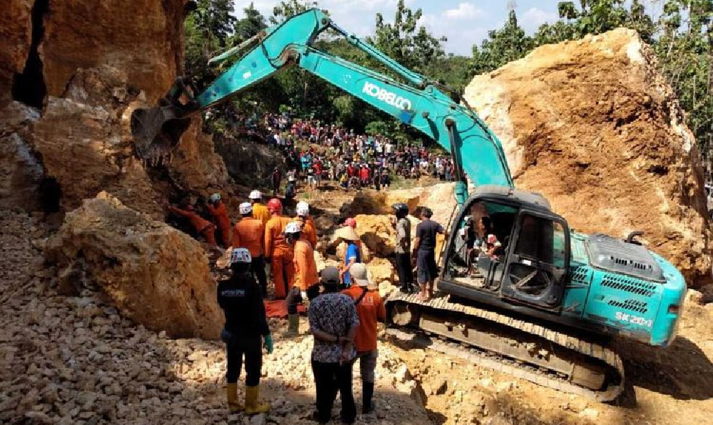 Namun nahas, tiba-tiba tebing batu setinggi 30 meter di atas mereka longsor. Batu-batu berukuran besar seketika menimpa dan menimbun ketiga penambang berikut satu unit truk. Saat itu dua orang berhasil menyelamatkan diri,” kata Zaenal. (tim NM/Grob)