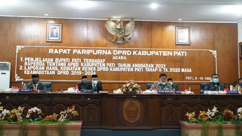 Kegiatan ini digelar guna memberikan penjelasan dan keterangan mengenai gambaran umum kondisi keuangan daerah serta arah dan kebijakan keuangan serta sistematika rancangan APBD kabupaten Pati tahun anggaran 2021.