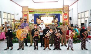 Tak lupa Bupati berpesan kepada para peserta dan pelaku seni pewayangan agar selalu ikut mensosialisasikan penanganan pandemi Covid-19 di setiap pagelaran. (tim NM/Pati)