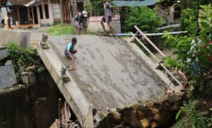 “Guyuran hujan berhari-hari menyebabkan debit sungai over kapasitas. Derasnya sungai menggerus kaki penyangga jembatan yang sudah keropos hingga ambrol. Sebenarnya sudah lama terlihat rusak namun tak ditangani,” terang Siswanto.