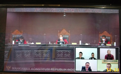 Turut hadir dalam persidangan secara daring atau online, Heintje Grontson Mandagie sebagai Pemohon I, Hans M Kawengian sebagai Pemohon II, dan Soegiharto Santoso sebagai Pemohon III.