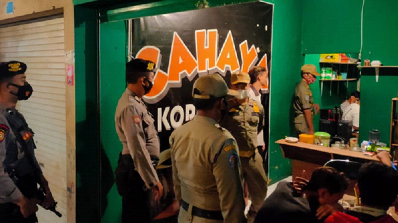 Seperti yang terjadi pada Sabtu malam, puluhan personel gabungan, Satpol PP, Kepolisian dan TNI, tampak melakukan penertiban sejumlah cafe dan warkop di beberapa lokasi. Tampak para petugas memperingatkan pemilik usaha dan pengunjung untuk menerapkan Prokes, sebagai upaya menekan penyebaran virus Corona.