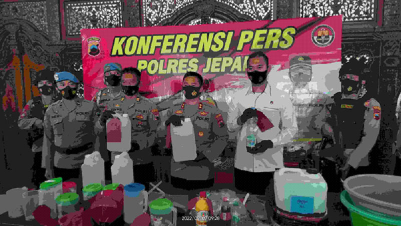 Dari kasus ini Satreskrim Polres Jepara mengamankan barang bukti berupa 6 (enam) jerigen ethanol berbeda ukuran, 4 (empat) jerigen kosong, 1 (satu) botol miras oplosan, 20 (dua puluh) botol kosong bekas miras oplosan, 2 (dua) buah ember, 1 (satu) teko takar, 6 (enam) teko plastik, 1 (satu) alat ukur kadar alkohol dan 1 (satu) alat pengaduk.