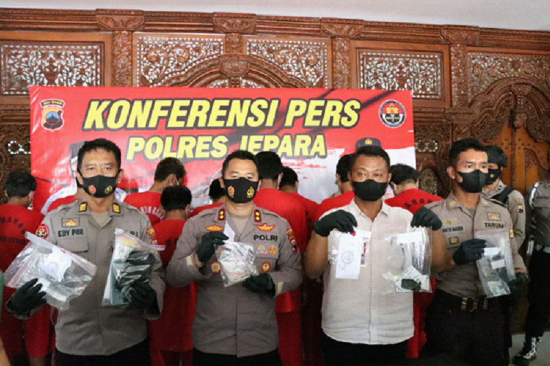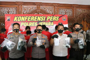 Jumat siang (04/03/2022) saat keterangan Konferensi Pers, Kapolres Jepara AKBP Warsono, SH., SIK., MH, menerangkan bahwa penangkapan tersangka tersebut selama masa operasi yang dijalankan Satresnarkoba Polres Jepara. Selain menangkap 11 tersangka, Polres Jepara juga mengamankan barang bukti berupa 21.7 gram sabu.