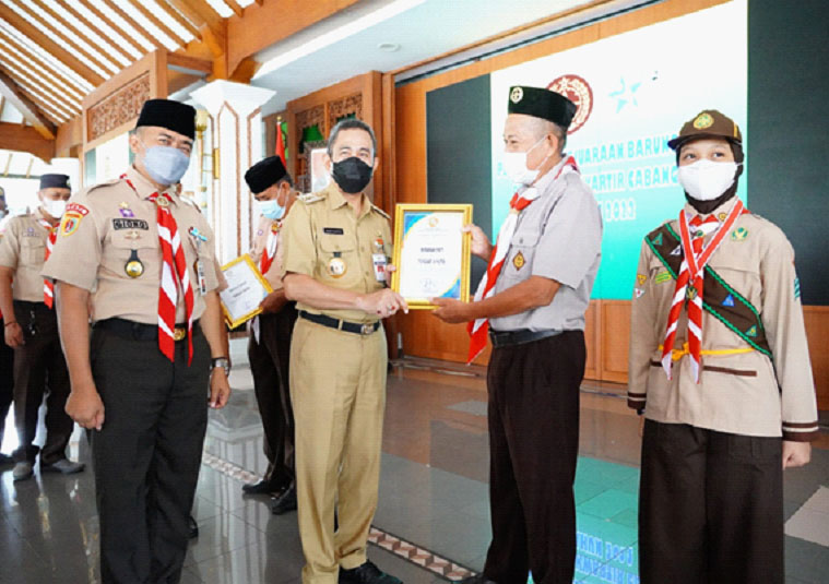 PATI-NEWSMETRO.CO – Setelah memenangkan kejuaraan barung tergiat pesta siaga tahun 2022, lima kwartir ranting gerakan Pramuka terima penghargaan. Penghargaan dari Kwarcab Kabupaten Pati tersebut diserahkan langsung oleh Bupati Pati Haryanto di Pendopo Kabupaten Pati, Selasa (15/03/2022).