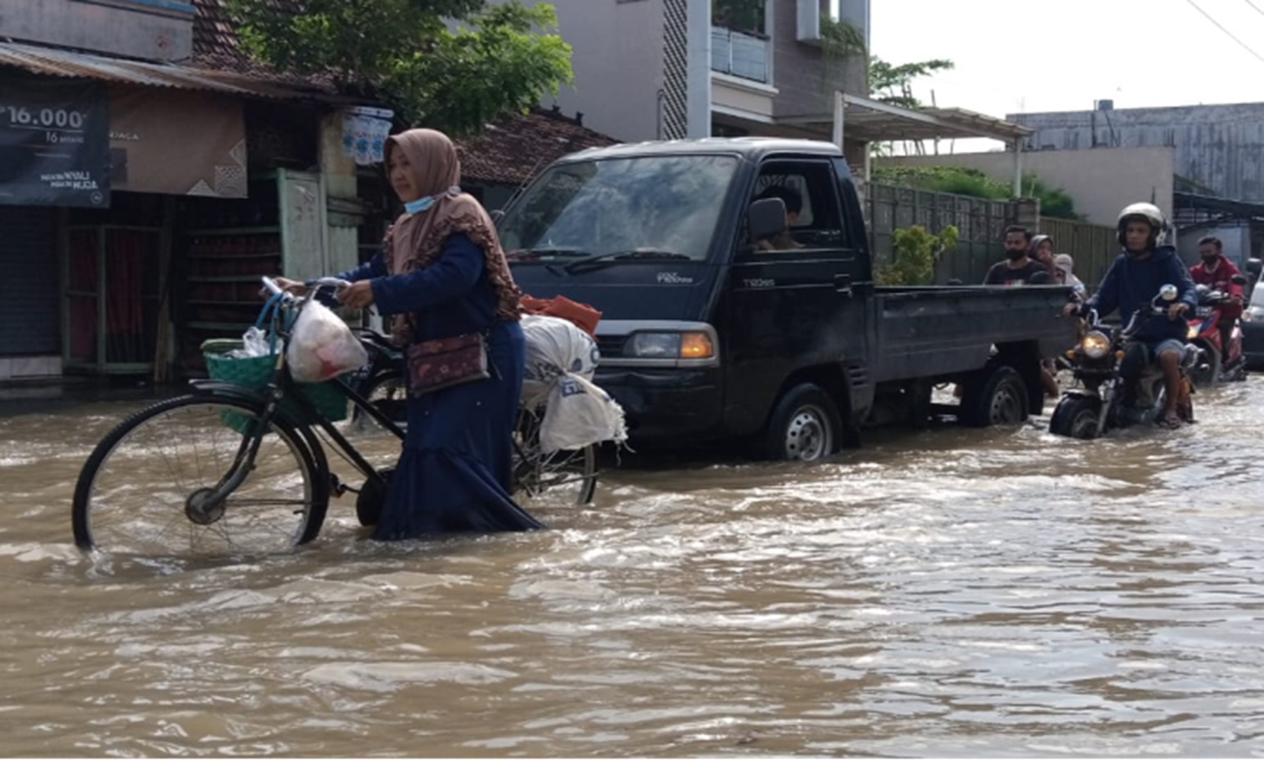 Tak hanya rumah yang tergenang banjir, tak jarang pengendara roda dua juga harus gigit jari. Mengingat, kendaraan yang juga mogok akibat kemasukan air. Tahun ini kebanjiran sudah tiga kali, kalau ada hujan sehari pasti banjir,” kata warga setempat. (tim NM/Pati).