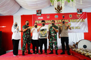 PATI-NEWSMETRO.CO – Bupati Pati Haryanto bersama Forkompimda, kemarin menghadiri acara Pencanangan Kampung Pancasila desa Sumberejo kecamatan Jaken Kabupaten Pati. Pencanangan dilakukan oleh Danrem 073/Makutarama, yang dalam kesempatan tersebut diwakili oleh Kepala Staf Korem Letkol Czi Hendro Edi Busono.
