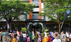 PATI-NEWSMETRO.CO – Hadiri pasar murah di Plaza Pragolo Pati, Bupati Pati Haryanto sebut sembako murah untuk meringankan beban masyarakat Pati. Antrian panjang warga terlihat di pintu masuk utama Plaza Pragolo, Selasa (26/04/2022) pagi.
