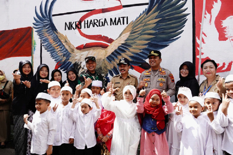 Bupati juga melakukan peninjauan lokasi mural yang berada di gang gapura Getaan yang sebelumnya diawali dengan pemotongan pita dan penandatanganan prasasti sebagai tanda peresmian Kampung Pancasila. (tim NM/Pati).