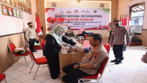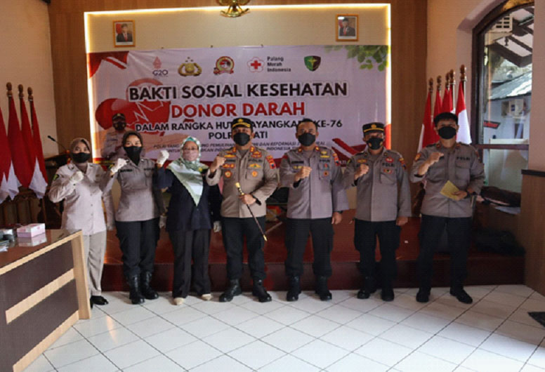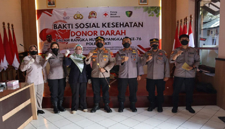 PATI-NEWSMETRO.CO – Dalam rangka menyambut HUT Bhayangkara Ke – 76 Polres Pati bekerjasama dengan Palang Merah Indonesia (PMI) Pati menggelar bakti sosial kesehatan donor darah bertempat di Aula Bhakti Satria Polres Pati Selasa (07/06/2022). pukul 08.00 WIB hingga pukul 12.00 WIB.