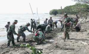 Sambut HUT TNI Ke-77, Kodim Pati Hijaukan Pesisir Pantai Pesona Banyutowo