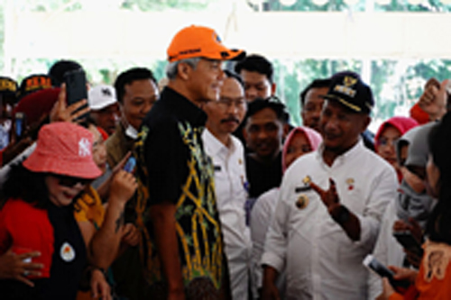 PATI.JUWANA. OBSERVASI FAKTUAL.COM – Gubernur Jawa Tengah Ganjar Pranowo didampingi Penjabat Bupati Pati Henggar Budi Anggoro meninjau banjir di Desa Doropayung