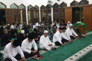 Kegiatan Istighosah di Masjid Diponegoro Kipan C Yonif 410/Alugoro Pati pagi tadi diawali dengan shalat Subuh berjamaah yang diikuti seluruh jamaah dan dilanjutkan prosesi kegiatan Istighosah secara virtual dari Masjid Agung Kabupaten Cianjur Jawa Barat.